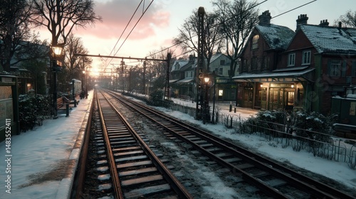 © Factory Stock, Fototapeta premium Winter train station sunrise