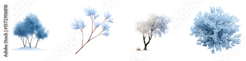 © Naruedetch, Naklejka premium Winter Tree Collection: Icy Blue Trees and Bushes on White Background