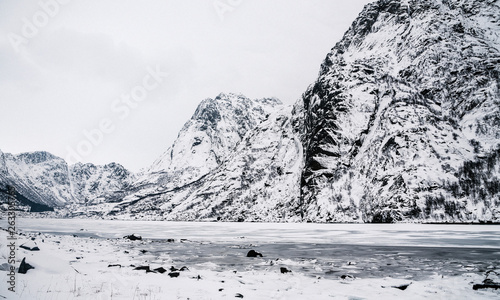 © Alisha, Fototapeta premium Winter Trekking to Djupfjordvatnet Lake on Lofoten Archipelago in the Arctic Circle in Norway