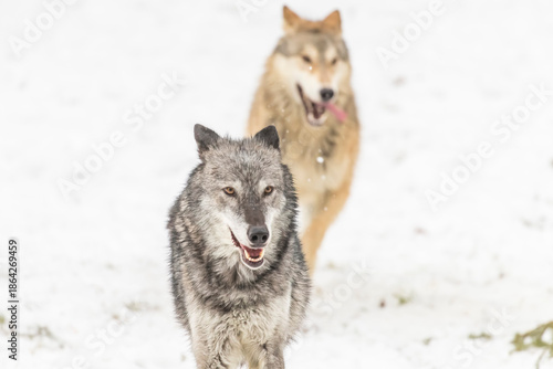 Obraz premium Winter Unity: Tundra Wolves Bound by Trust Before the Hunt