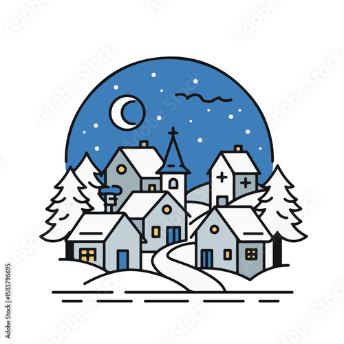 Fototapeta premium Winter village at night illustration.