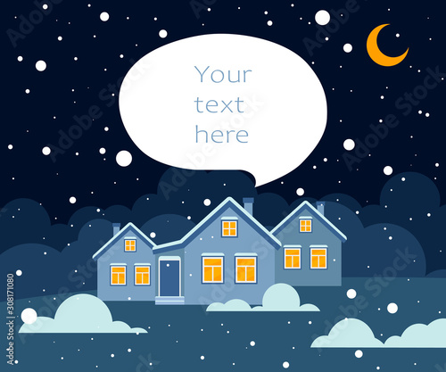 © Darya, Naklejka premium winter village landscape. vector illustration.