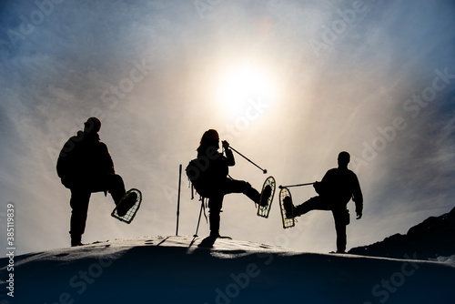 Obraz premium winter walking, sports and team friendship environment
