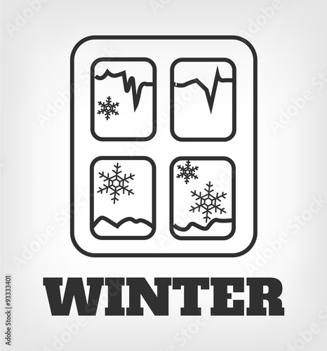 © PrettyVectors, Fototapeta premium Winter window. Vector black icon logo illustration