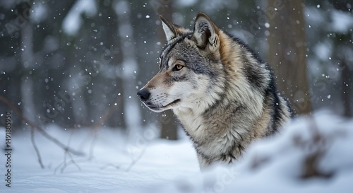 © Yukiiii, Obraz premium Winter Wolf: A Silent Watch
