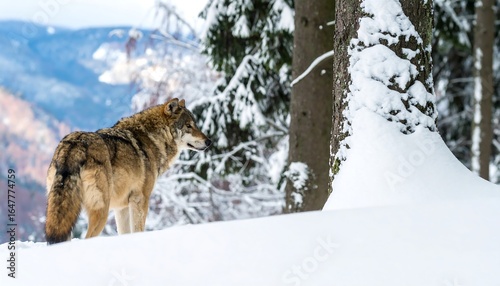 © Aldi, Naklejka premium Winter wolf in snowy forest