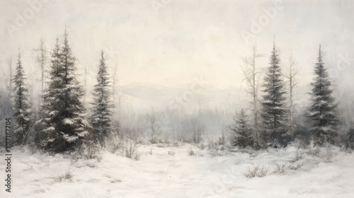 © hazia, Naklejka premium Winter Wonderland: A Serene Forest Scene