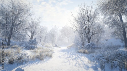 © Anak, Obraz premium Winter Wonderland: A Snowy Path Through a Frosty Forest