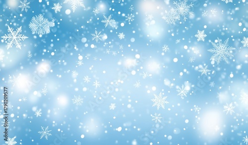 © shi, Fototapeta premium Winter Wonderland Blue Background with Snowflakes and Bokeh Effect