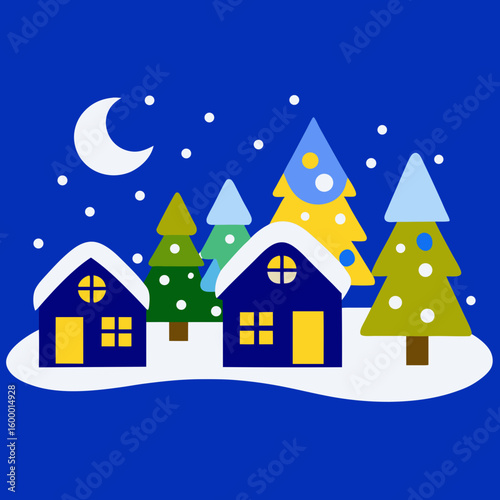 © AS Store, Fototapeta premium Winter Wonderland Christmas Village at Night vector illustration