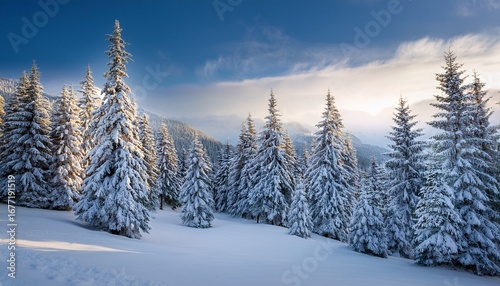 Fototapeta premium winter wonderland featuring snow covered pine trees