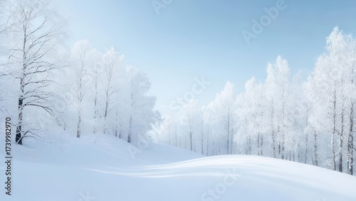 Obraz premium Winter Wonderland Forest Path Covered in Snow and Frost.