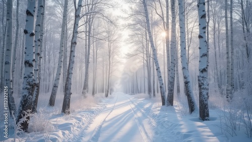 Naklejka premium Winter Wonderland in a Snow-Covered Birch Forest