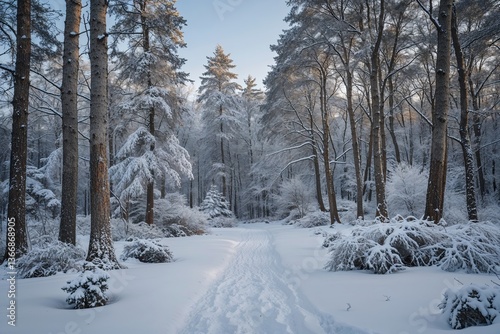 © Michael, Obraz premium Winter Wonderland in Snowy Forest Timberland