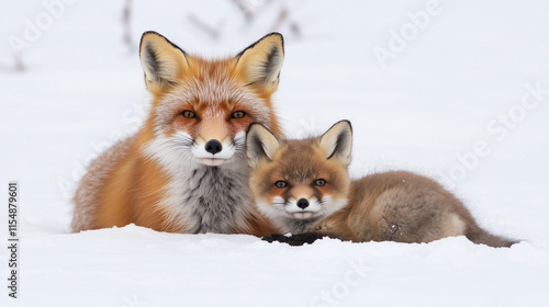 Obraz premium Winter Wonderland: Red Fox Family in Snow