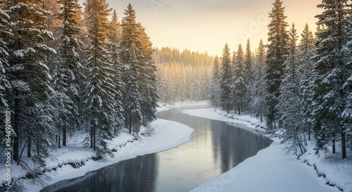 © aritha, Fototapeta premium Winter wonderland river scene