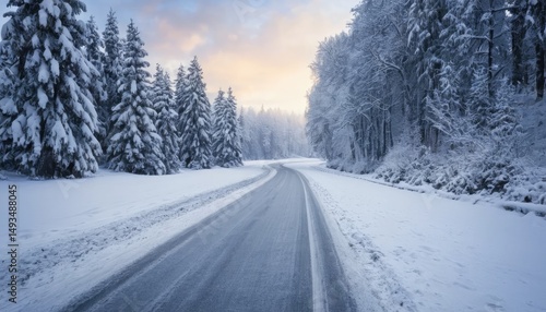 Obraz premium Winter Wonderland Road: A Serene Snowy Drive