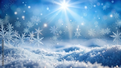 © udomsak, Naklejka premium Winter wonderland scene with shimmering ice crystals on a pristine snowy surface creating a sparkling winter snow background, frosty whites, wintry conditions