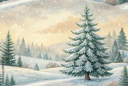 Naklejka premium Winter wonderland scene with snow-covered pine trees in pastel landscape