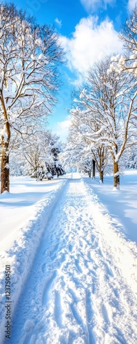 Fototapeta premium Winter wonderland scenic path snow-covered landscape nature photography...
