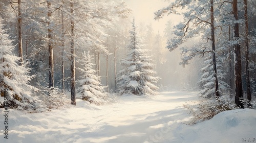 Fototapeta premium Winter Wonderland: Serene Snow-Covered Forest Path