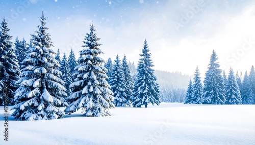 Naklejka premium Winter Wonderland: Snow-Covered Pine Trees in a Serene Forest