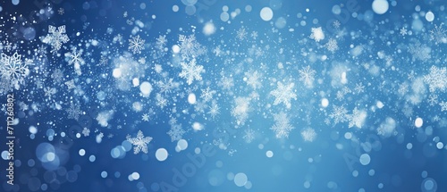 Obraz premium Winter wonderland: snowflakes and bokeh effect on a blue background