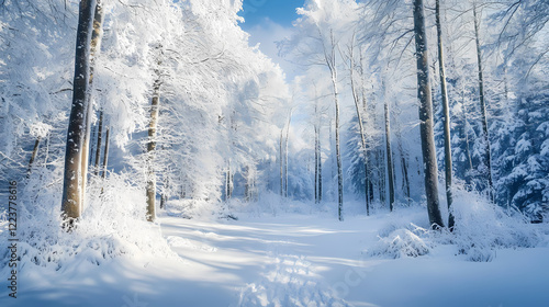 Naklejka premium Winter wonderland snowy forest scene with clear glade. Frosty Glade....