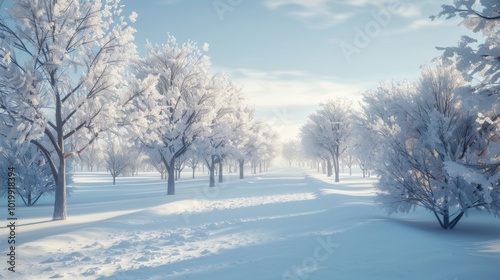 © AlfaSmart, Fototapeta premium Winter Wonderland: Snowy Path Through Frozen Trees