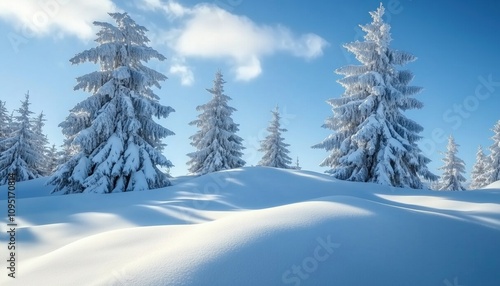 Naklejka premium Winter Wonderland: Stunning View Of Snow-Covered Fir Trees, Snowdrifts, And...