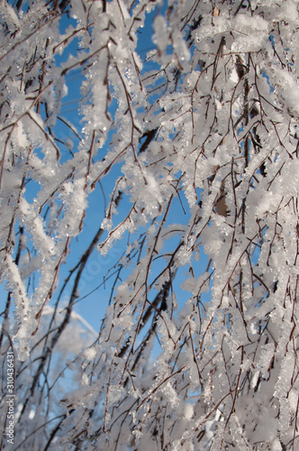 © Daria Nipot, Fototapeta premium Winter wonderland: Tree branches covered with snow