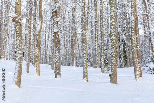© Mykola Iegorov, Fototapeta premium Winter woods, snowy mood. Cloudy day.