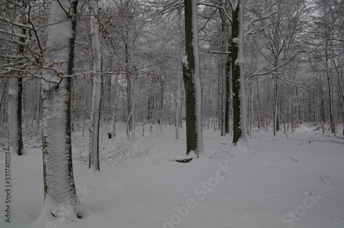 Naklejka premium Winterlandschaft, Bäume, Schnee, Winter, Wald, Wege, Frost,