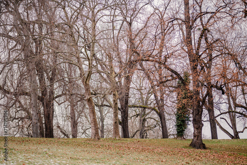 © Kostas Koufogiorgos, Obraz premium Winterliche Baumkronen in einem Park