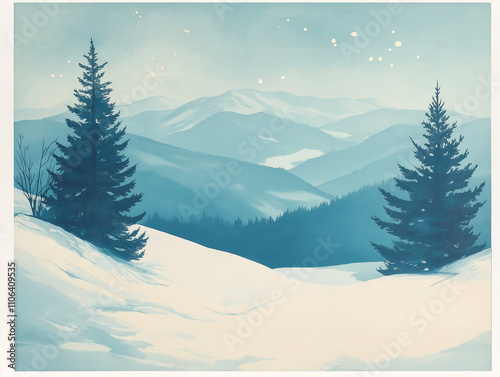 © Cedric, Fototapeta premium Winterliche Berglandschaft mit schneebedeckten Bäumen