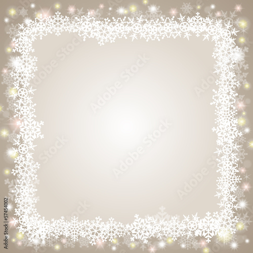 Fototapeta premium Winterlicher, quadratischer Hintergrund mit Eiskristallen, beige