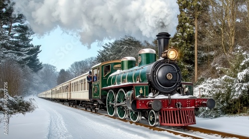 © Ilja, Obraz premium Wintertime Express Charming Vintage Train Journeys Through Snowy Woodlands in Full Steam