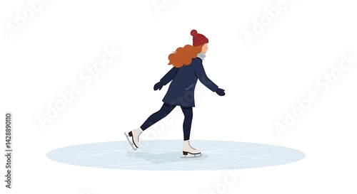 Obraz premium Wintertime Joy: An Illustration of a Woman Gracefully Ice Skating Outdoors
