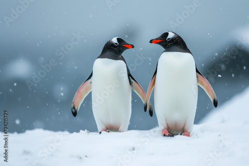 © Andrii , Obraz premium Wintery Waddle: Penguins Strolling Through Snow