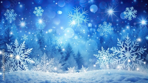 Naklejka premium wintry Christmas scene with blue background and delicate snowflakes