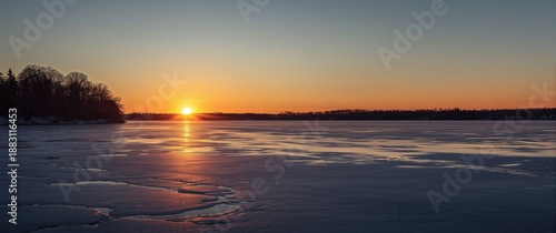 © The 2R Artificiality, Fototapeta premium Wintry evening at Toronto's Sam Smith Park with the sun setting over Lake Ontario