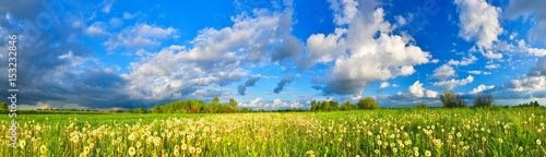 © denis_333, Obraz premium Wiosenna panorama łąki, pełna mlecze