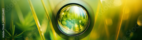 © yeseyes9, Fototapeta premium Wiosenne tło - trawa w soczewce. Zielona pora roku.