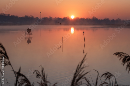 © Elżbieta Kaps, Obraz premium Wiosenny wschód słońca w Goczałkowice Zdrój.