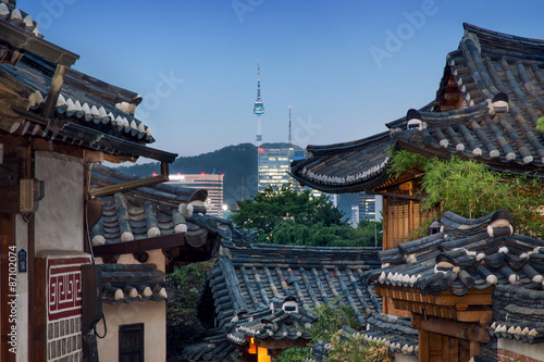 Obraz premium Wioska Bukchon Hanok w Seulu