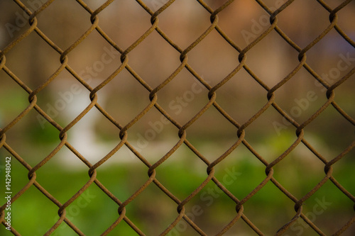 Fototapeta premium wire mesh steel with green grass background