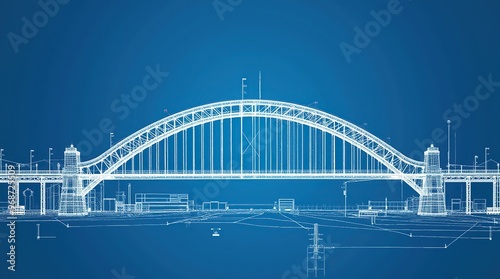© vitanovski, Fototapeta premium Wireframe blueprint of modern bridge on blue background