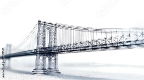 © zerogami, Obraz premium Wireframe Bridge: Architectural Design Visualization