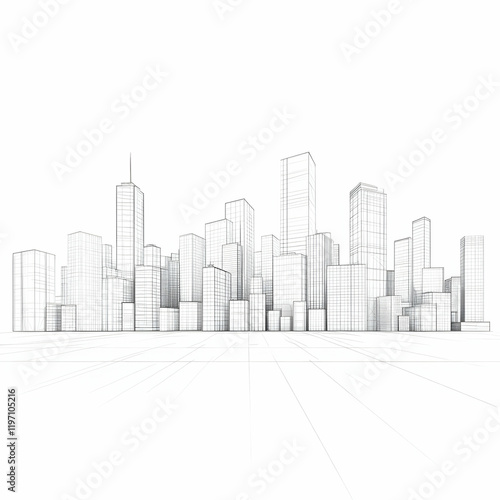 Fototapeta premium Wireframe Cityscape 3D Illustration