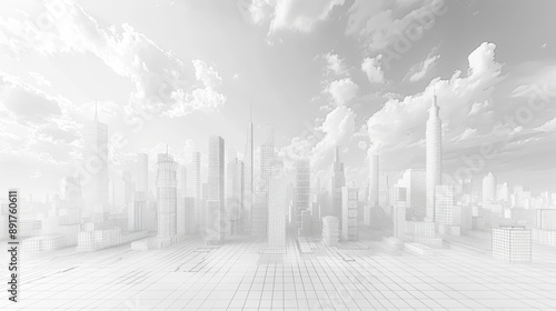 © racesy, Fototapeta premium Wireframe Cityscape under Cloudy Sky